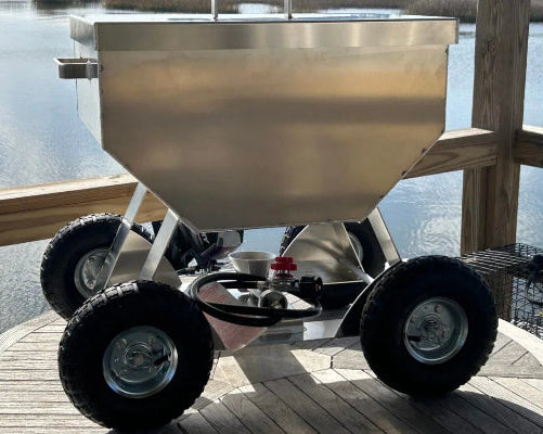 Our Wheeled Classic Cooker is designed for optimum performance for a perfectly steamed batch of shellfish every time. Pneumatic tires make it it perfect to load on the boat and drop on the sandbar for easy transportation.